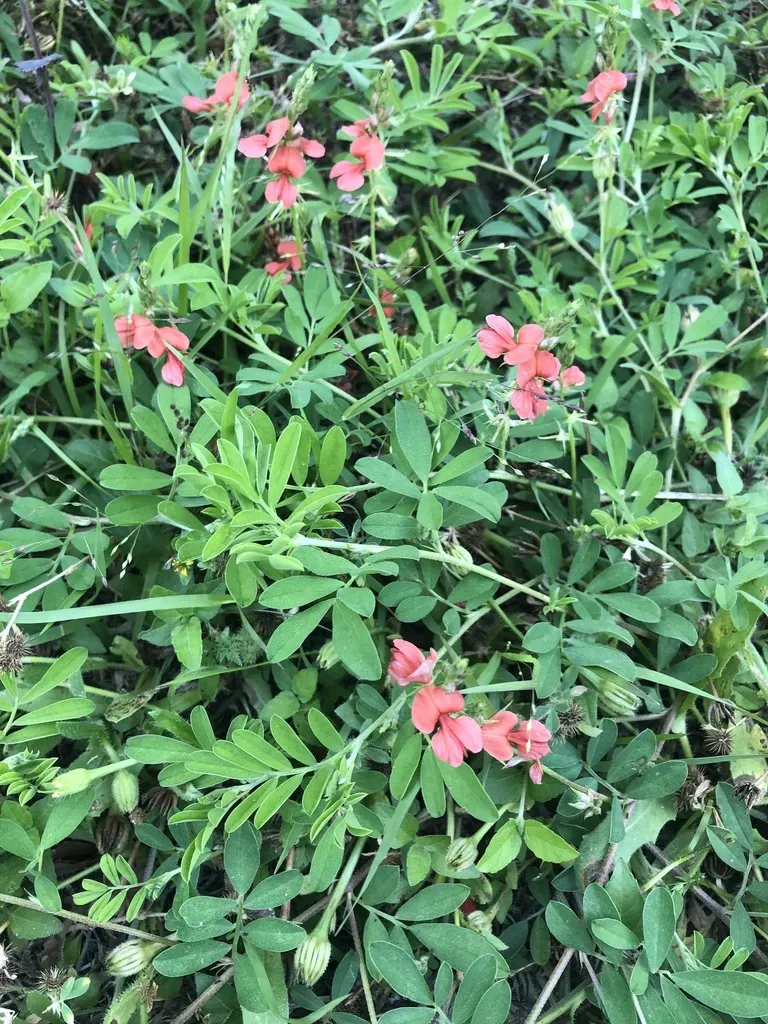 Scarlet Pea (Indigofera Miniata) is a perennial herb in the Fabaceae family with moderate care difficulty. It requires moderate watering and full sun or partial shade light in USDA hardiness zones 7-10. This plant is safe for cats and dogs.