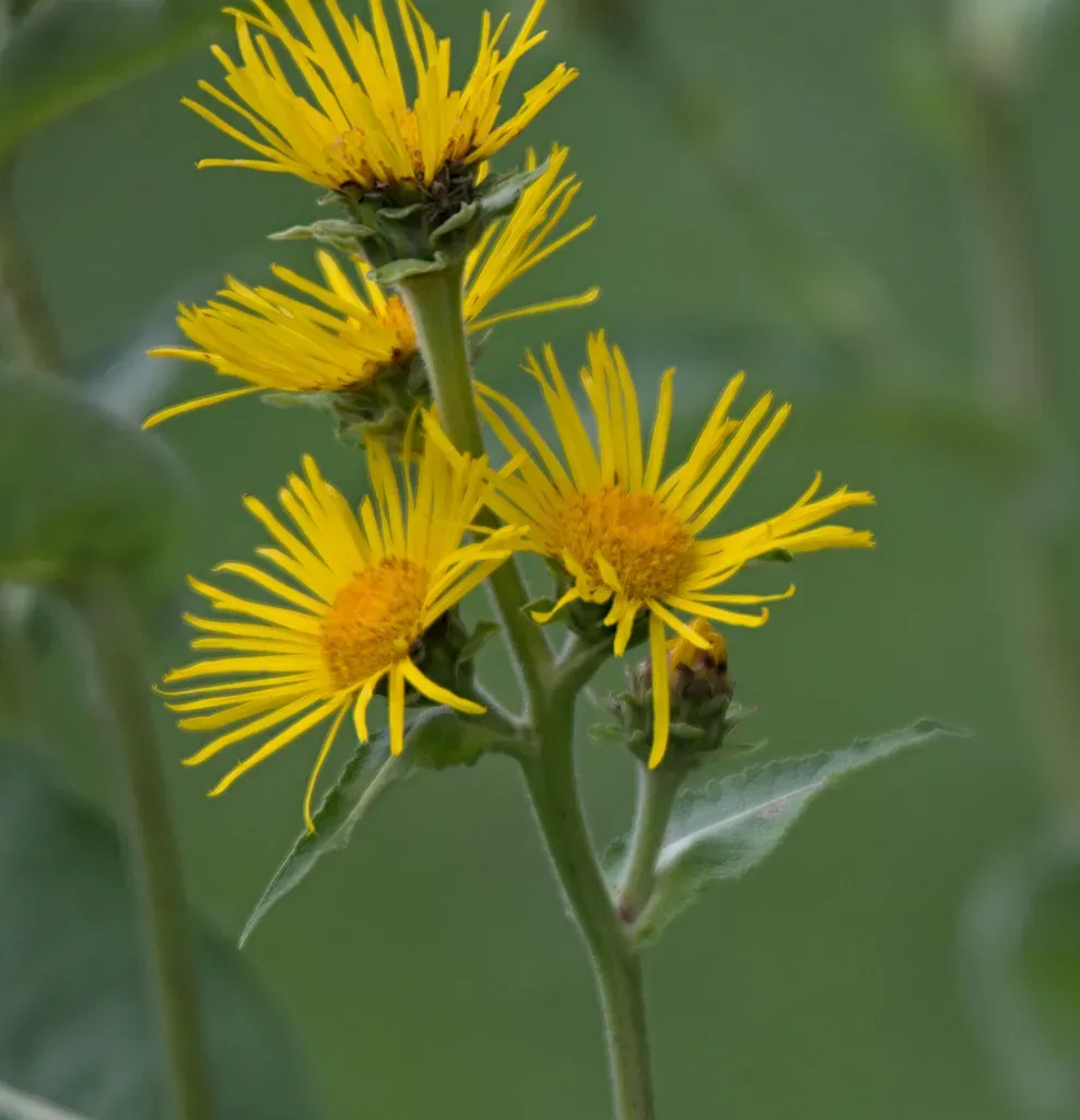 Inula helenium, commonly known as Elecampane, is a robust, perennial herbaceous plant in the Asteraceae family, native to Europe and Asia, widely naturalized in North America.