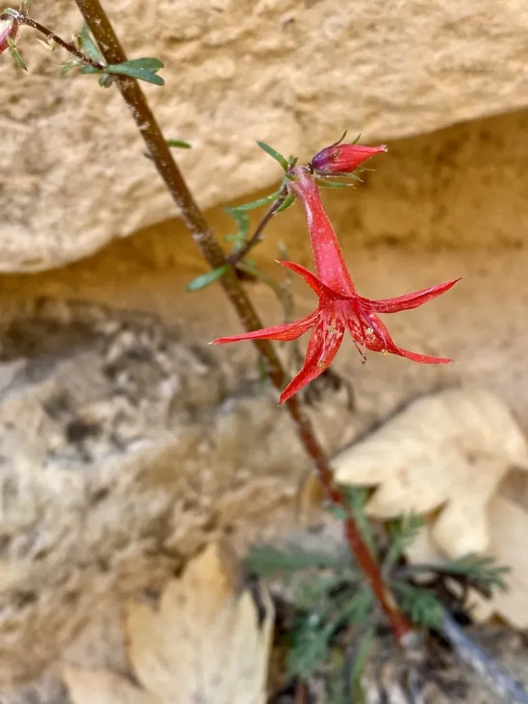 Ipomopsis aggregata is a striking biennial or short-lived perennial plant known for its bright red, pink, or white tubular flowers and comb-like green leaves.