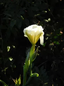 White Cemetery Iris (Iris Albicans) is a perennial bulb in the Iridaceae family with easy care difficulty. It requires moderate watering and full sun light in USDA hardiness zones 7-9. This plant is toxic to cats and dogs — keep it out of reach of pets.