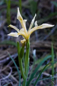 Iris hartwegii is a perennial herb native and endemic to California, known for its slender stems bearing one to three flowers that range in color from purple to yellow or almost white.