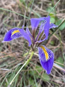 Iris unguicularis is a rhizomatous perennial iris native to the Mediterranean region, known for its winter-blooming pale lilac or purple flowers with a yellow central band.