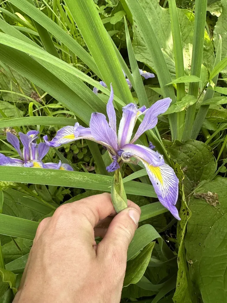 Iris virginica is a perennial iris native to the eastern and southern United States, known for its striking violet-blue flowers and sword-shaped leaves.