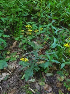 Water Ragwort (Jacobaea Erratica) is a biennial or perennial herb in the Asteraceae family with moderate care difficulty. It requires moderate watering and full sun or partial shade light in USDA hardiness zones 5-8. This plant is toxic to cats and dogs — keep it out of reach of pets.