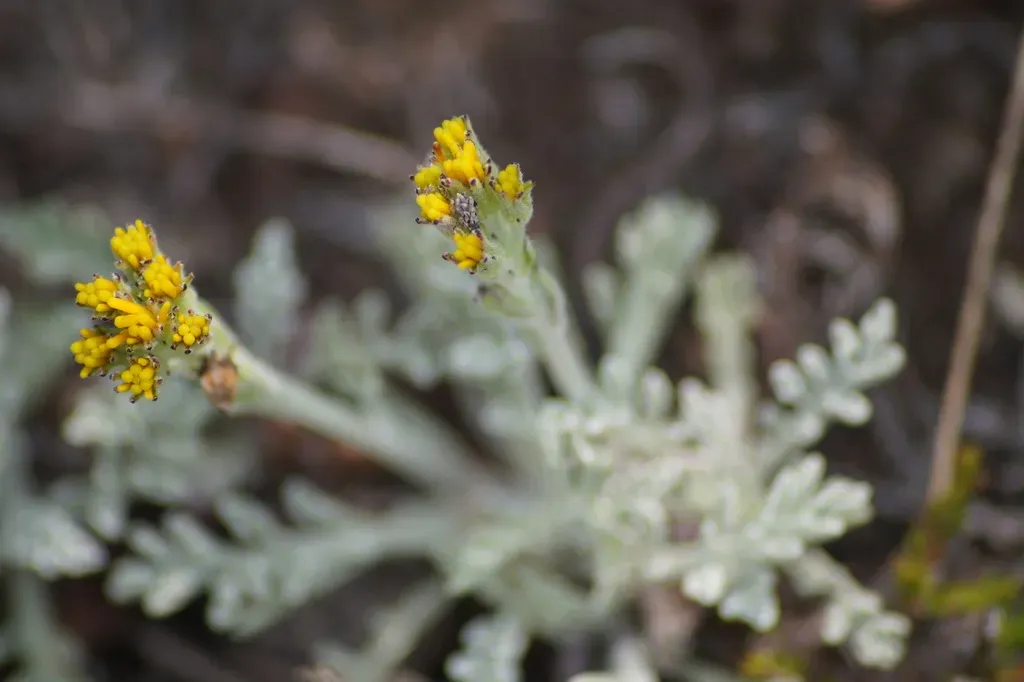 Jacobaea incana is a perennial herbaceous plant native to Central Europe, known for its silvery-gray foliage and yellow daisy-like flowers.