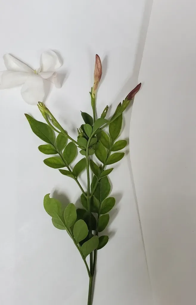 Jasminum officinale is a vigorous, twining deciduous or semi-evergreen climber known for its fragrant white flowers and graceful foliage.