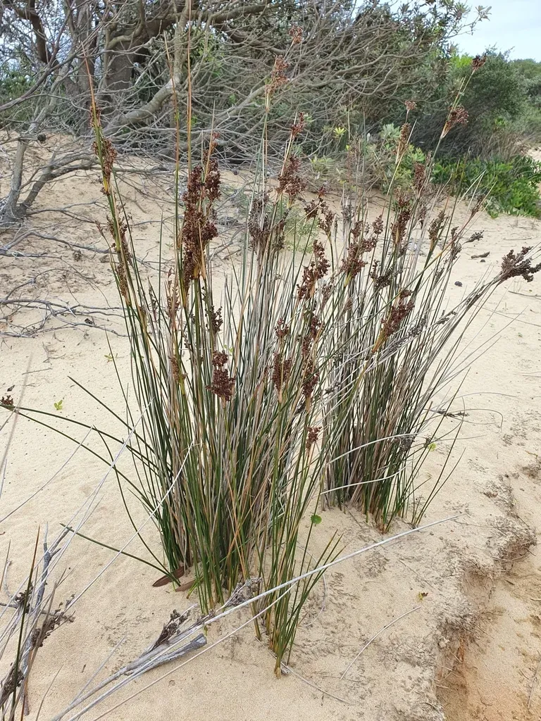 Juncus kraussii is a perennial rush species native to coastal regions, known for its dense tufted growth and adaptation to saline environments.