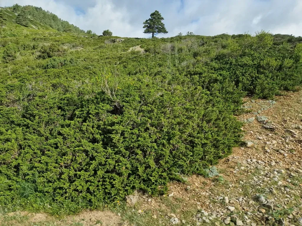 Juniperus sabina is a shrubby evergreen conifer native to mountainous regions of central and southern Europe and western and central Asia, known for its spreading or prostrate growth habit and aromatic foliage.