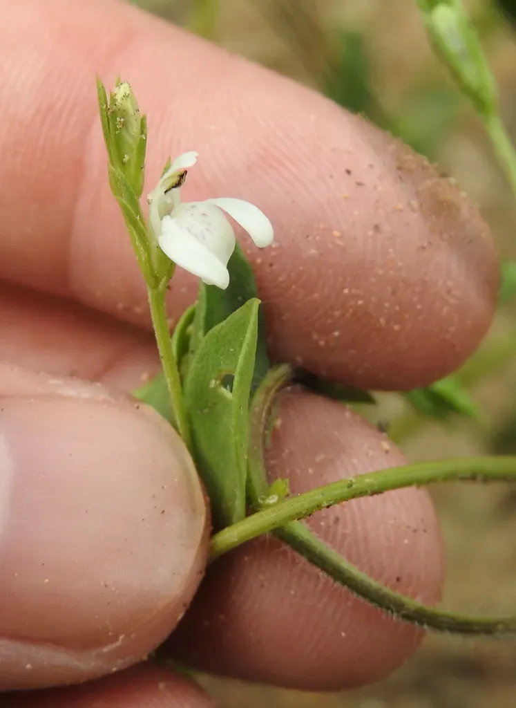 Justicia anagalloides is a perennial herb or subshrub native to regions from Ethiopia to South Africa, characterized by prostrate to suberect annual stems and ovate to obovate leaves.