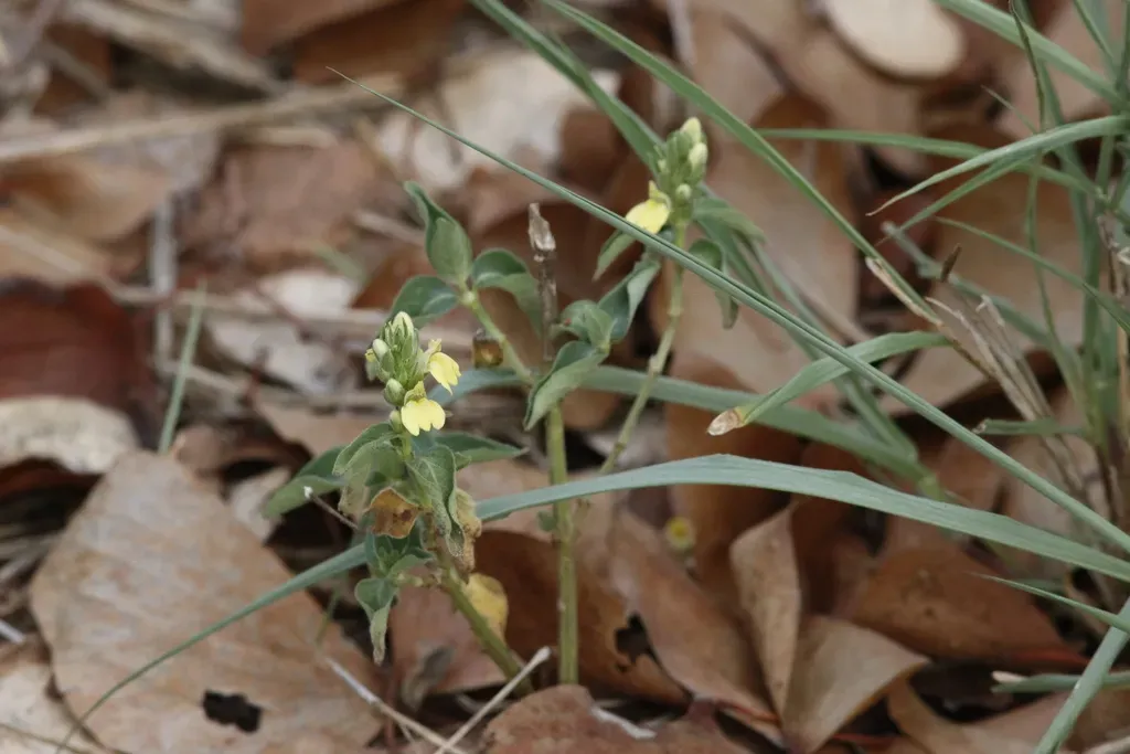Justicia flava is an erect or trailing perennial herb with yellow flowers commonly found in tropical regions.