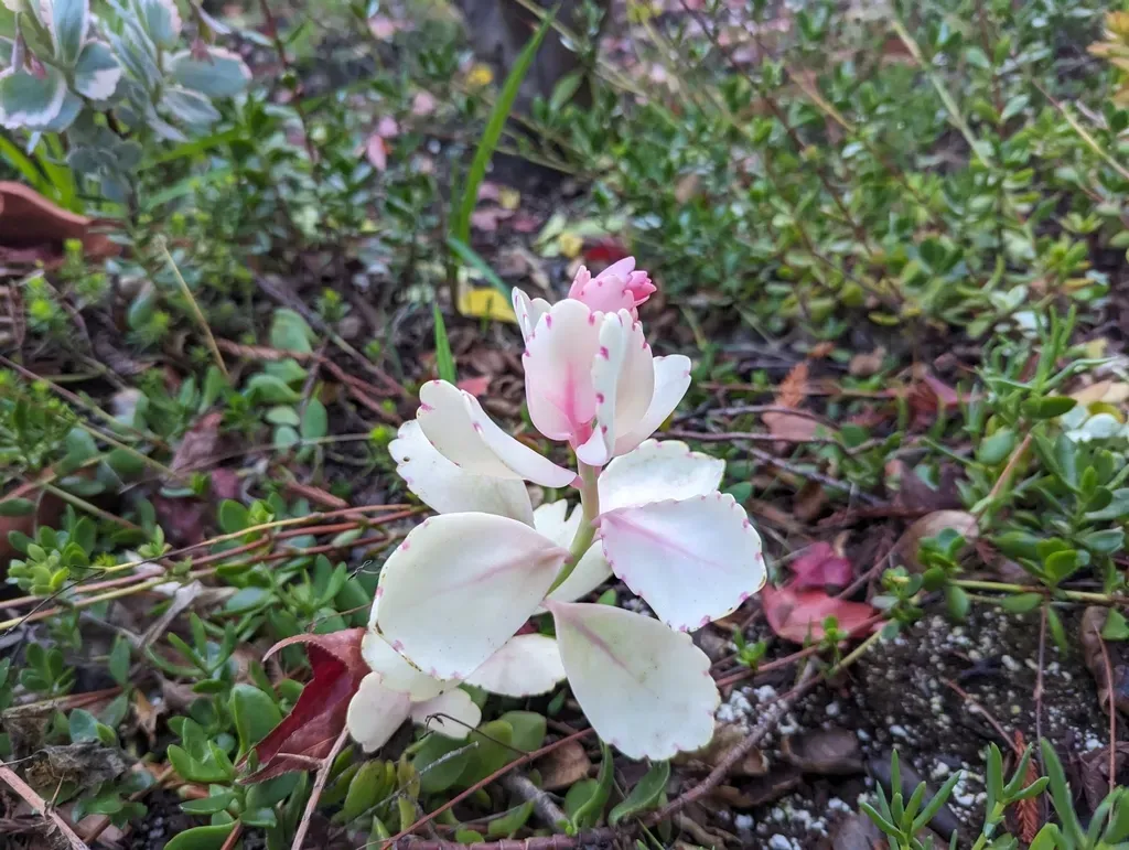 A perennial succulent known for its scalloped, fleshy leaves with a soft lavender hue and variegation.