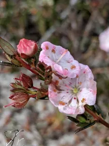 Hairy Laurel (Kalmia Hirsuta) is a perennial shrub in the Ericaceae family with moderate care difficulty. It requires moderate watering and full sun or partial shade light in USDA hardiness zones 6-9. This plant is toxic to cats and dogs — keep it out of reach of pets.