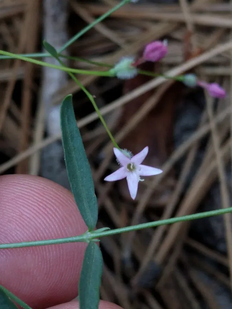 Kelloggia galioides is a perennial herb native to California and other parts of western North America, characterized by slender erect stems and lance-shaped leaves.