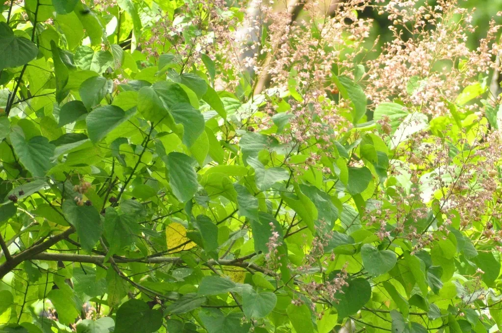 Kleinhovia hospita is a medium-sized evergreen tree known for its dense crown and delicate pink flowers.