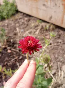 Knautia macedonica is a clump-forming perennial known for its deep crimson pincushion-like flowers.