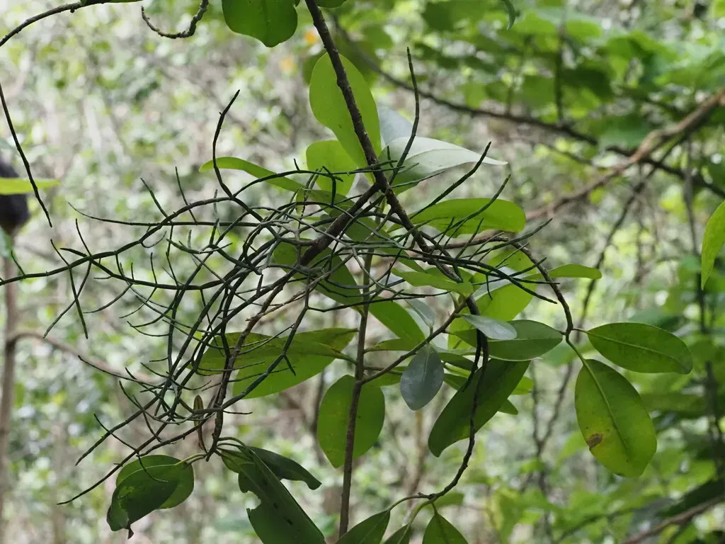 Korthalsella Platycaula (Korthalsella Platycaula) is a plant in the Santalaceae family with moderate care difficulty. It requires moderate watering and moderate light.