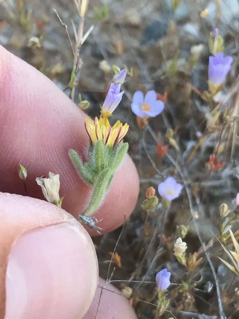 Slender Hareleaf (Lagophylla Ramosissima) is a annual herb in the Asteraceae family with easy care difficulty. It requires low watering and full sun light in USDA hardiness zones 7-10. This plant is safe for cats and dogs.