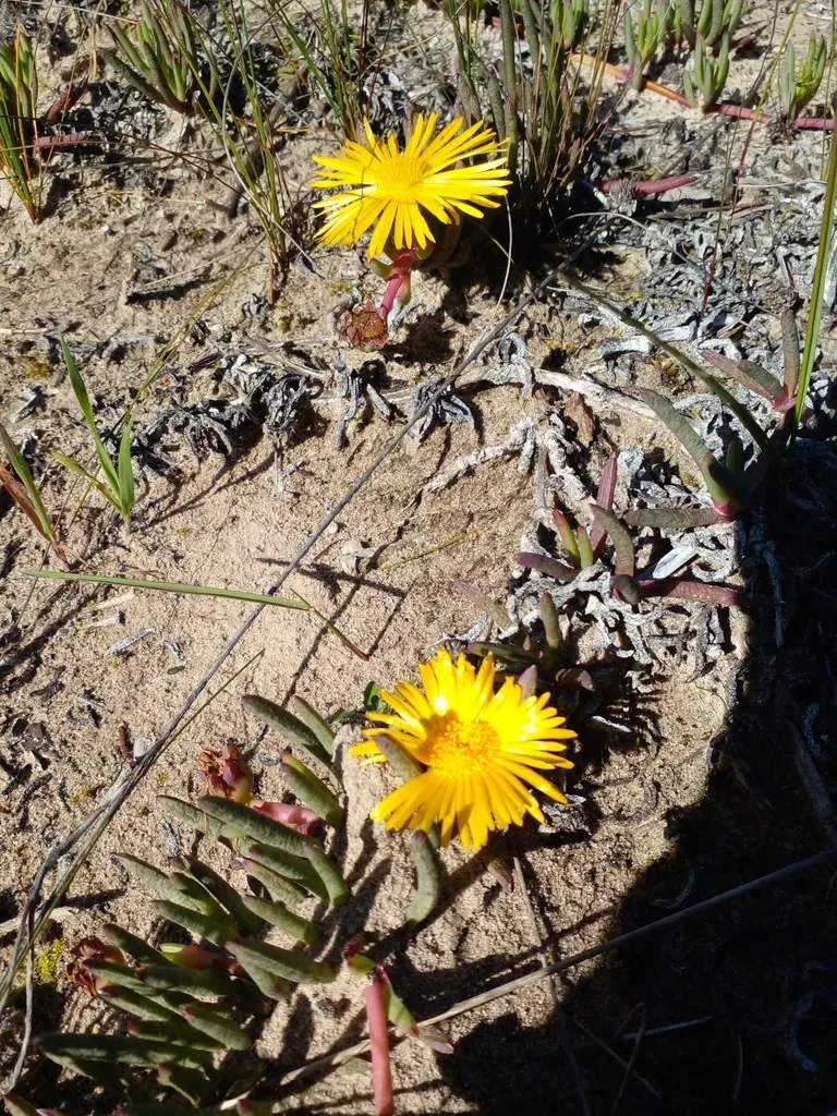 Lampranthus explanatus is a succulent subshrub native to South Africa, known for its trailing stems and vibrant purple-pink flowers.