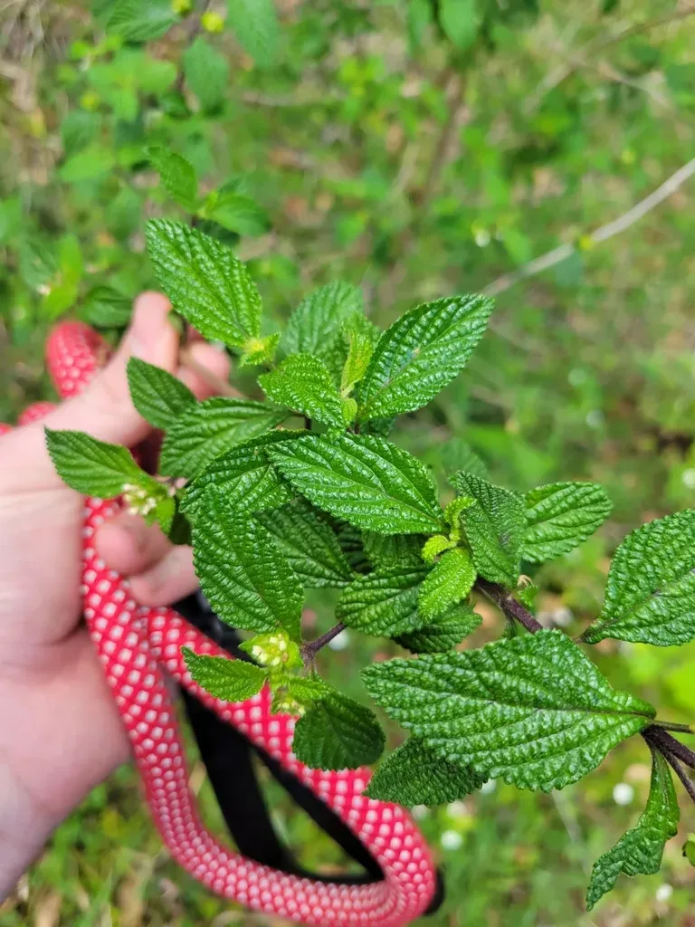 Lantana hirta is a medium-sized perennial aromatic shrub with quadrangular stems, sometimes having prickles.