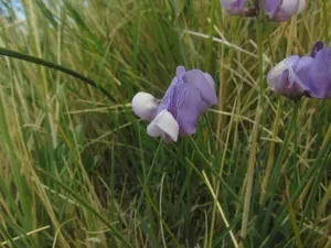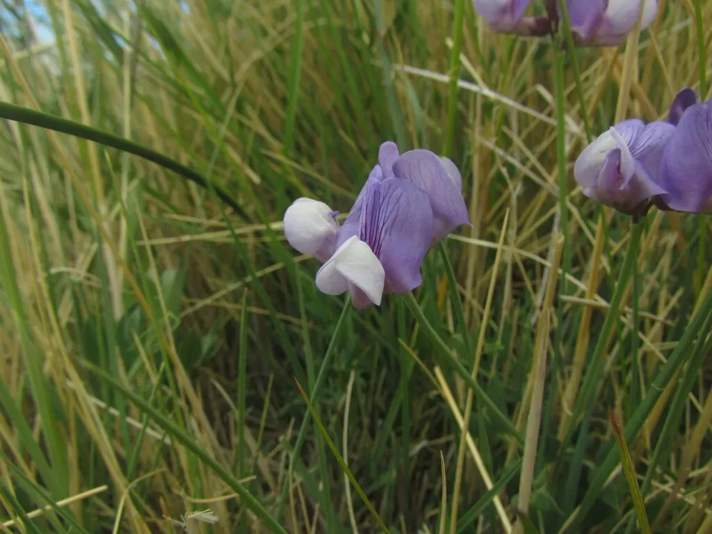 Lathyrus magellanicus is a short-lived, herbaceous perennial climbing plant that produces annual stems from a longer-lived rootstock, growing up to 50 cm tall.