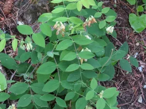 Lathyrus ochroleucus is a perennial climbing vine native to North America, known for its creamy white to yellowish pea-shaped flowers and compound leaves with tendrils.