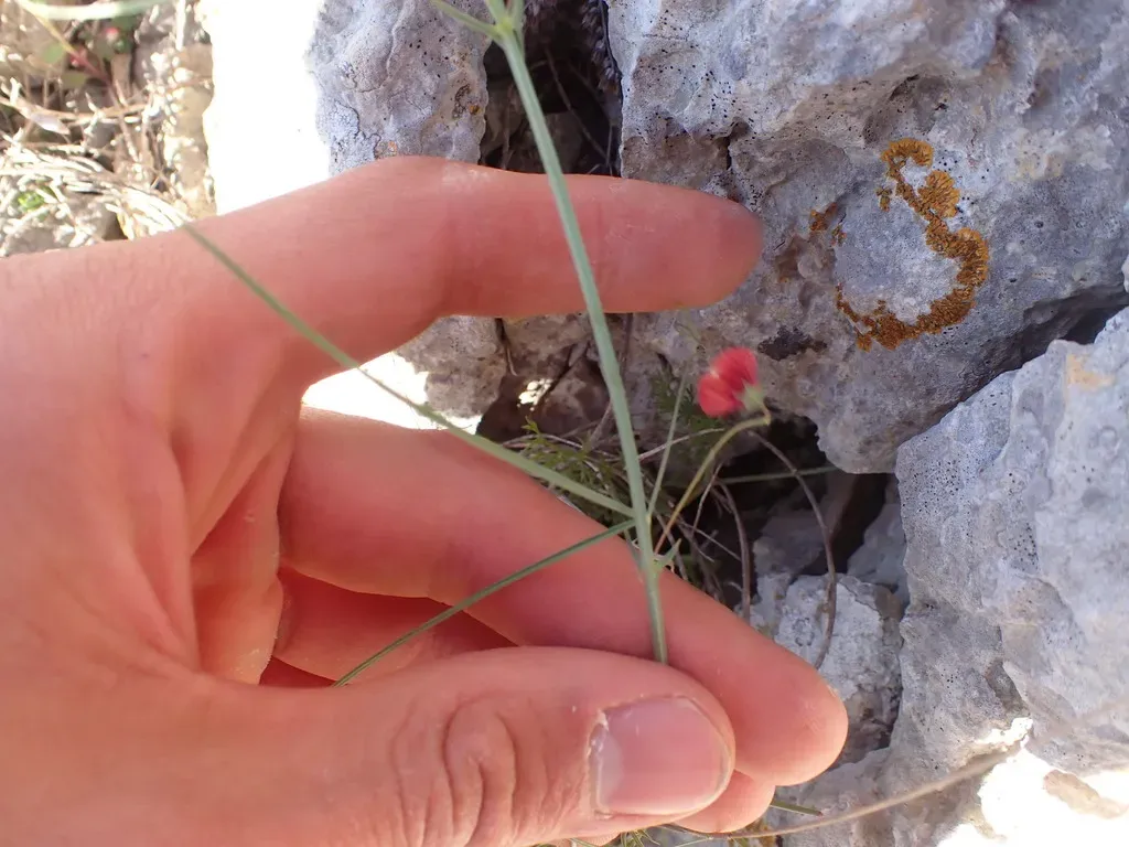 Lathyrus setifolius is a slender, scrambling annual herbaceous plant with bristly-surfaced leaves, belonging to the legume family Fabaceae.