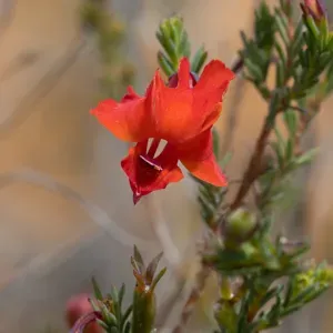 Red Leschenaultia (Lechenaultia Formosa) is a perennial shrub in the Goodeniaceae family with easy care difficulty. It requires low watering and full sun light in USDA hardiness zones 9-11. This plant is safe for cats and dogs.