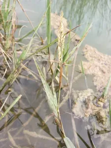 Leersia hexandra is a perennial aquatic grass with a pantropical distribution, commonly found in wetlands and rice fields.