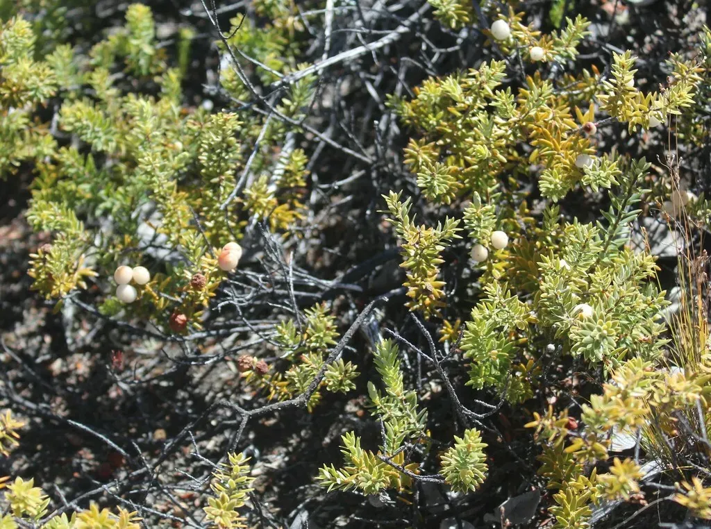 Pūkiawe (Leptecophylla Tameiameiae) is a perennial shrub in the Ericaceae family with moderate care difficulty. It requires moderate watering and full sun or partial shade light in USDA hardiness zones 9-11. This plant is safe for cats and dogs.