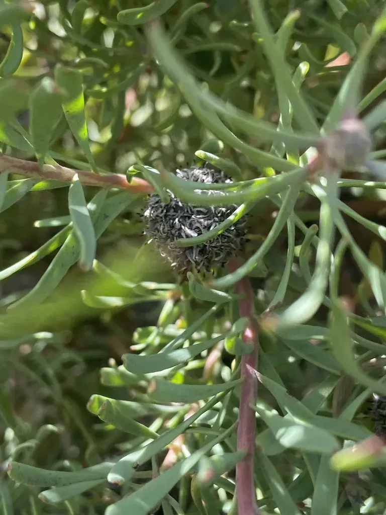 Galpin's Conebush (Leucadendron Galpinii) is a perennial shrub in the Proteaceae family with moderate care difficulty. It requires moderate watering and full sun light in USDA hardiness zones 9-11. This plant is safe for cats and dogs.