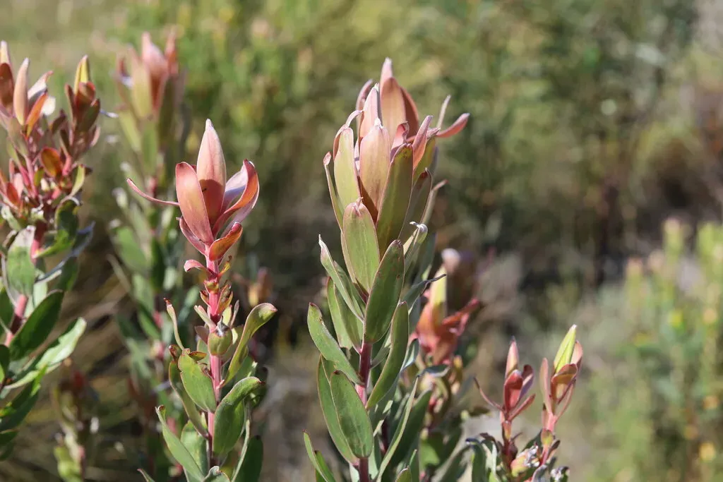 Leucadendron laureolum is a large evergreen shrub native to the southwestern Cape Provinces of South Africa, known for its bright yellow winter flowers.
