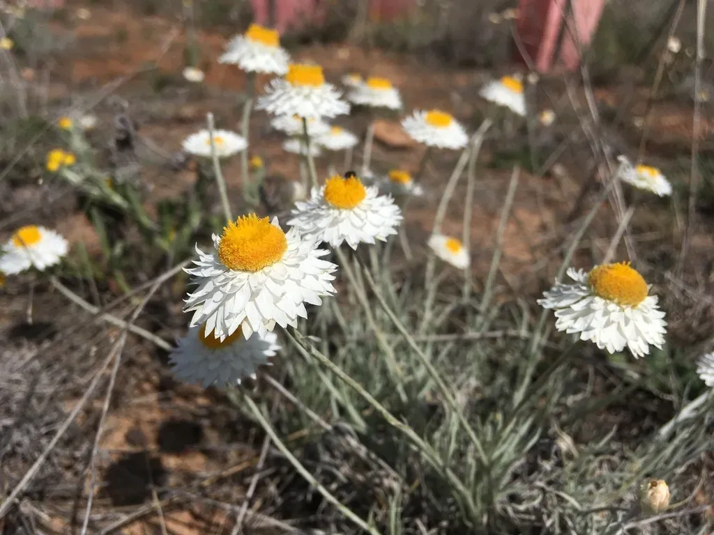 Hoary Sunray (Leucochrysum Albicans) is a perennial herb in the Asteraceae family with easy care difficulty. It requires low to medium watering and full sun or partial shade light in USDA hardiness zones 8-11. This plant is safe for cats and dogs.