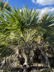 Leucothrinax morrisii is a slow-growing, midsized palm native to the Florida Keys and the Caribbean, characterized by a slender, smooth trunk and circular, fan-shaped leaves with silvery undersides.