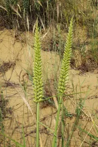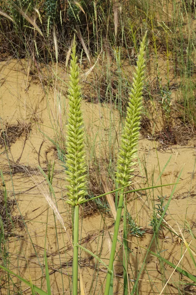 Leymus racemosus is a perennial wild rye grass known for its large size and adaptability to various environments including drylands, coasts, and saline soils.