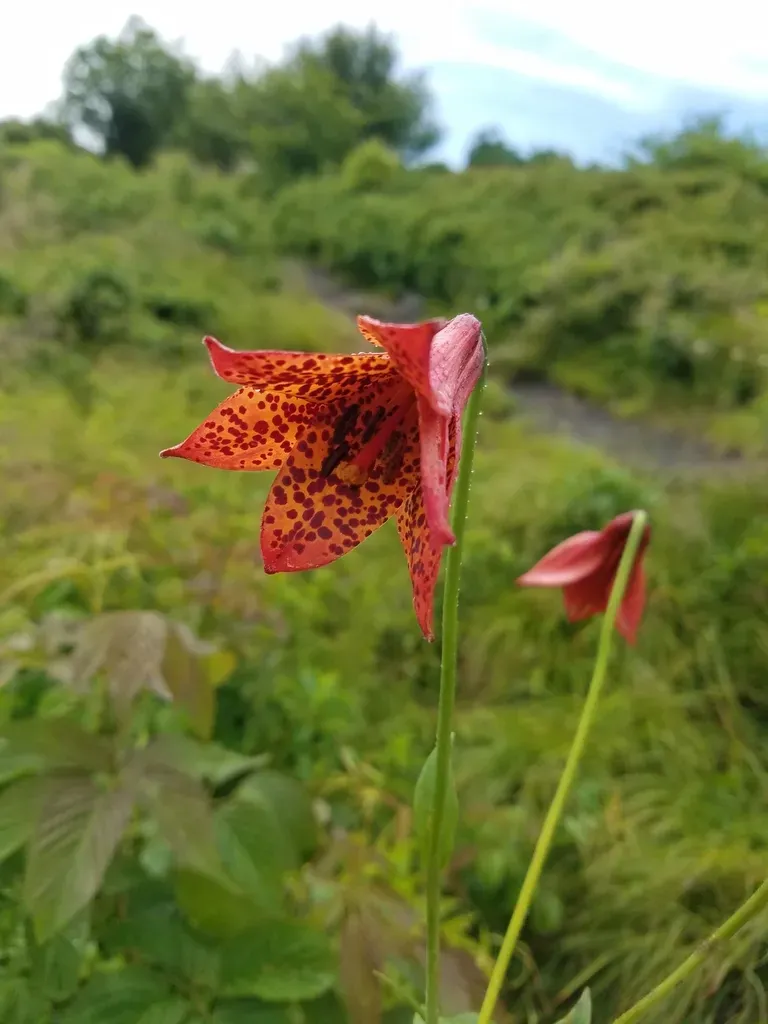 Lilium grayi is an herbaceous perennial wildflower in the lily family, endemic to the Appalachian Mountains, known for its striking orange to red bell-shaped flowers.