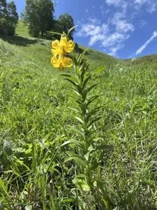 Clump-forming perennial bulb with showy, fragrant, nodding yellow turkscap flowers, often speckled with red or maroon.
