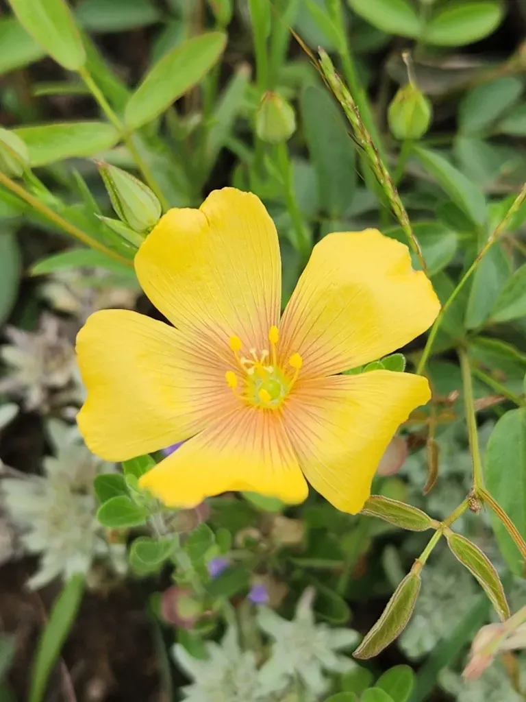 Berlandier's Yellow Flax (Linum Berlandieri) is a annual herb in the Linaceae family with easy care difficulty. It requires low watering and full sun light in USDA hardiness zones 6-9. This plant is safe for cats and dogs.