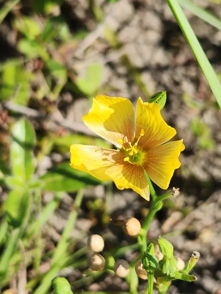 Linum rigidum is a herbaceous plant known for its stiff stems and bright yellow flowers, native to North American prairies.