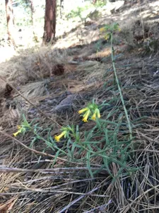 Lithospermum multiflorum is a perennial herbaceous plant known for its bright yellow, trumpet-shaped flowers and bushy habit.