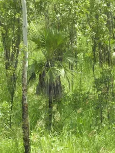 Livistona humilis is a small dioecious palm native to Northern Australia, growing up to 7 meters tall with fan-shaped leaves.
