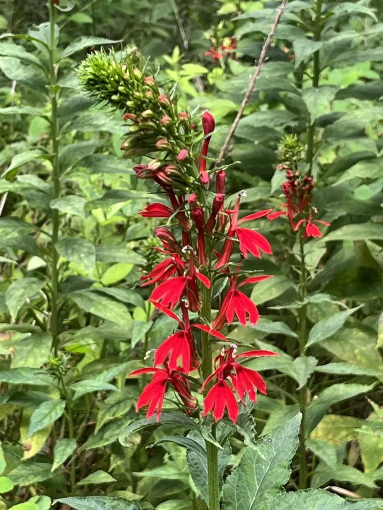 Cardinal Flower (Lobelia Cardinalis) is a perennial herb in the Campanulaceae family with moderate care difficulty. It requires high watering and full sun or partial shade light in USDA hardiness zones 3-9. This plant is toxic to cats and dogs — keep it out of reach of pets.