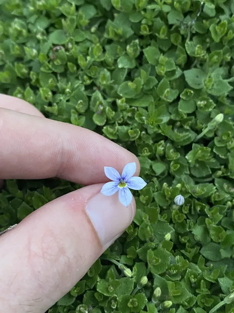 Blue Star Creeper (Lobelia Pedunculata) is a perennial groundcover in the Campanulaceae family with easy care difficulty. It requires moderate watering and full sun or partial shade or dappled_shade light in USDA hardiness zones 9-11. This plant is safe for cats and dogs.