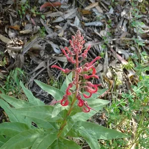 Lobelia tupa is a perennial plant native to Chile, known for its striking red flowers and broad, tobacco-like leaves.