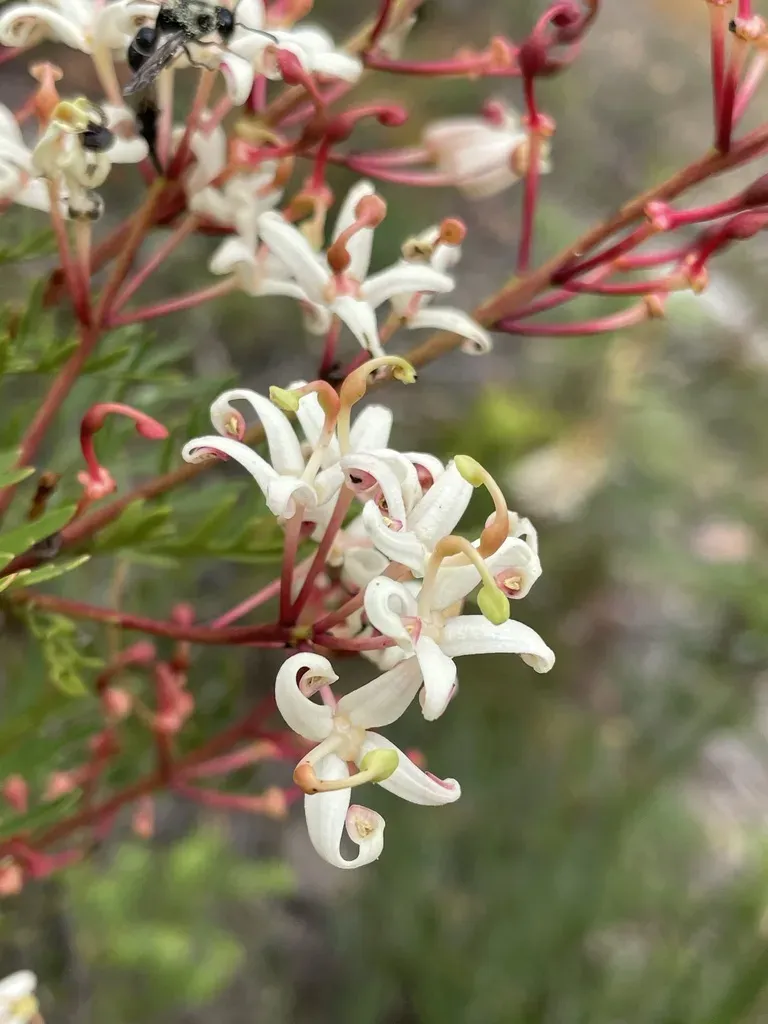 Lomatia tinctoria is a compact evergreen shrub native to Tasmania, known for its deeply divided dark green leaves and fragrant white flowers in midsummer.