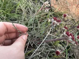 Lomatium hooveri is a perennial herb native and endemic to California, known for its finely dissected leaves and distinctive flowers with red or purple petals.