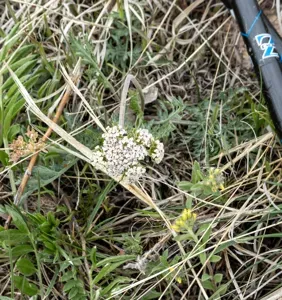 Lomatium orientale is a perennial herb native to western North America, known for its small white flowers and deeply dissected leaves. It thrives in dry, open habitats such as prairies, rocky slopes, and sagebrush meadows.