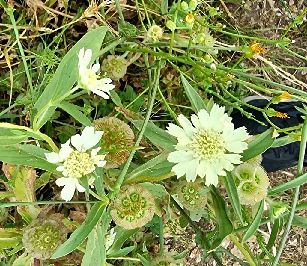 Lomelosia prolifera, commonly known as Carmel Daisy, is a flowering plant in the Caprifoliaceae family, notable for its creamy yellow flowers blooming from February to May.
