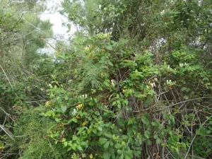 Lonicera etrusca is a vigorous, woody, deciduous or semi-evergreen twining climber reaching up to 4-6 meters in height with purplish young shoots and oval, mid-green to grey-green downy leaves.