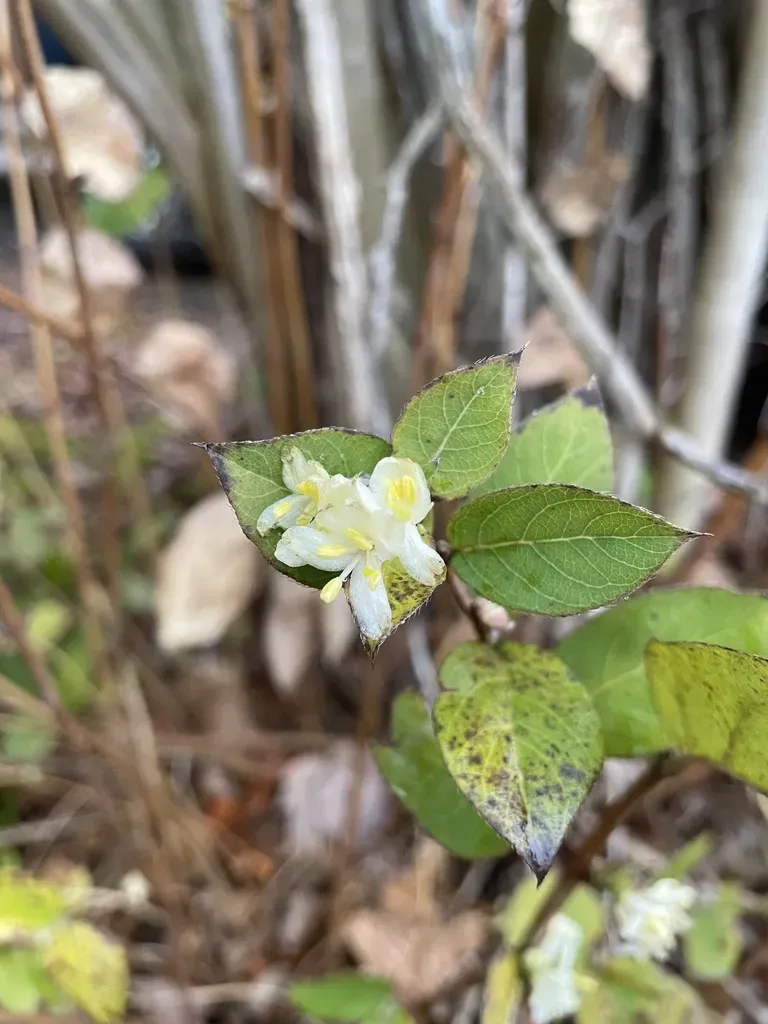 Lonicera fragrantissima is a broadleaf deciduous or semi-evergreen shrub known for its highly fragrant, creamy white flowers that bloom in late winter to early spring.
