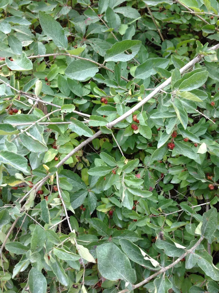 Morrow's honeysuckle is a multi-stemmed, upright, deciduous shrub known for its hollow stems, hairy leaves, and paired white to yellow flowers.